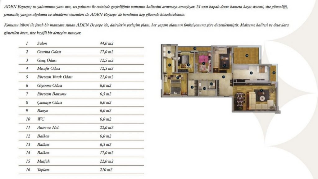 - Kendinizi özel hissedeceğiniz , ferah ve geniş yaşam alanları,